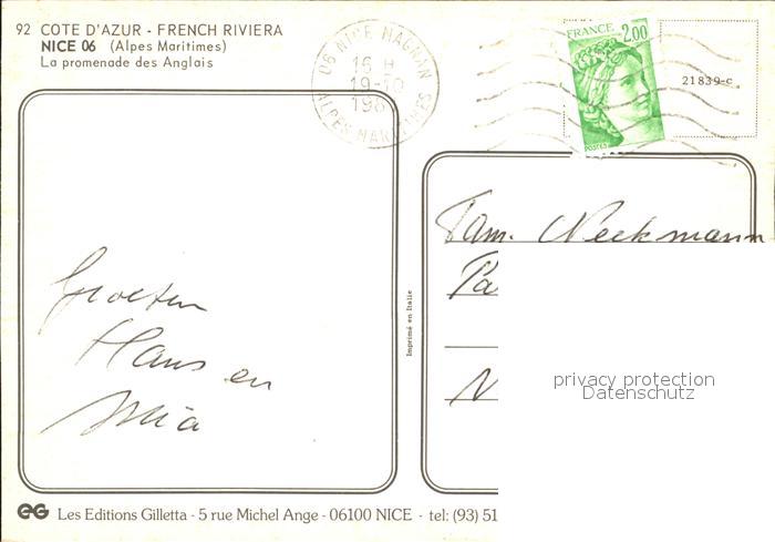 12574670 carte postale Nice Alpes Maritimes Promenade postalisch gelaufen Erhaltung siehe scans [KathaD79] KatCode: 11170006206088
