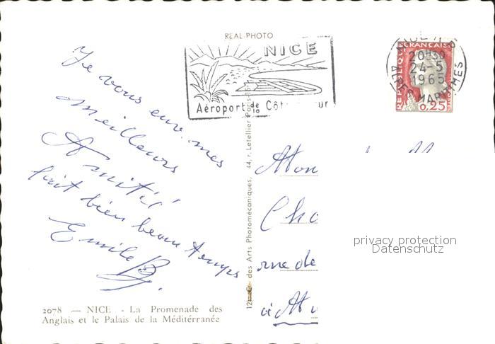12307013 carte postale Nice Alpes Maritimes Promenade Anglais Palais Mediterranee postalisch gelaufen Erhaltung siehe scans KatCode: 11170006206088