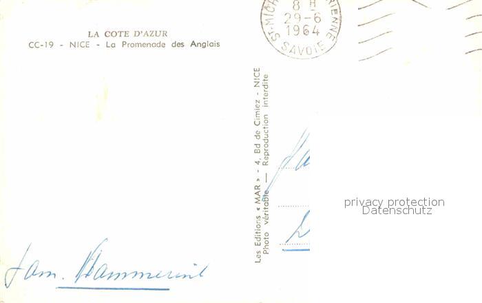 12897802 carte postale Nice Alpes Maritimes Promenade des Anglais postalisch gelaufen Erhaltung siehe scans [FriedD77] KatCode: 11170006206088