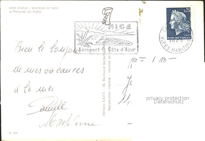 12307486 carte postale Nice Alpes Maritimes Promenade des Anglais postalisch gelaufen Erhaltung siehe scans KatCode: 11170006206088