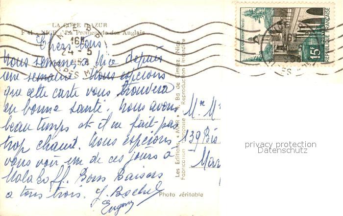 13539292 carte postale Nice Alpes Maritimes Promenade des Anglais postalisch gelaufen Erhaltung siehe scans [LiesaD40] KatCode: 11170006206088