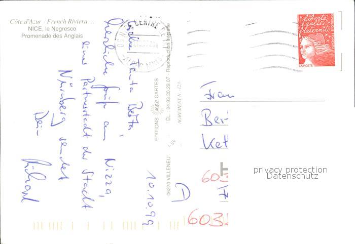 12454992 carte postale Nice Alpes Maritimes Promenade des Anglais Il Negresco Cote d Azur postalisch gelaufen Erhaltung siehe scans KatCode: 11170006206088