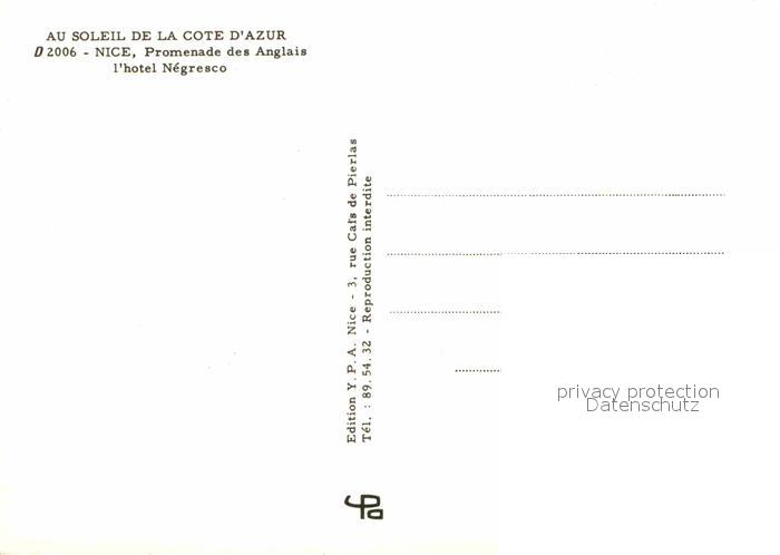 12663071 Nice Alpes Maritimes Promenade des Anglais l Hotel Negresco postalisch nicht gelaufen Erhaltung siehe scans [WerneD78] KatCode: 11170006206088