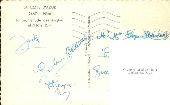 12456751 carte postale Nice Alpes Maritimes Promenade Hotel Ruhl postalisch gelaufen Erhaltung siehe scans KatCode: 11170006206088