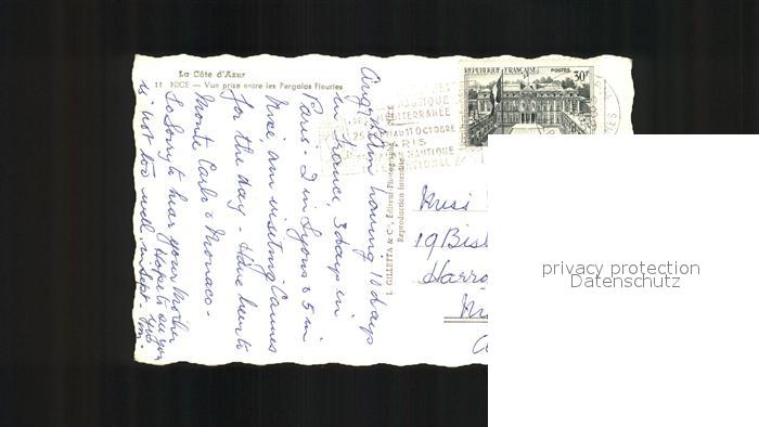 12306789 carte postale Nice Alpes Maritimes Promenade Pergolas Fleuries postalisch gelaufen Erhaltung siehe scans KatCode: 11170006206088