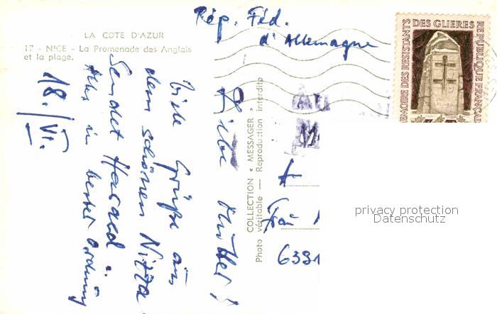 12900636 carte postale Nice Alpes Maritimes Promenade Strand postalisch gelaufen Erhaltung siehe scans [AndreD76] KatCode: 11170006206088