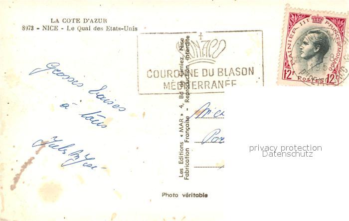 13575295 carte postale Nice Alpes Maritimes Quai des Etats Unis postalisch gelaufen Erhaltung siehe scans [LiesaD40] KatCode: 11170006206088