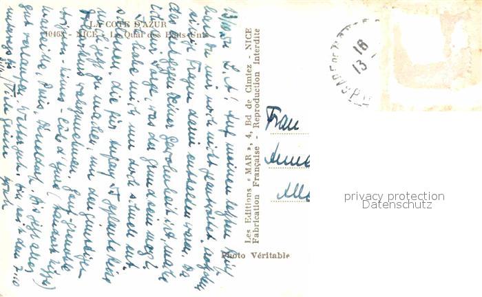 12810829 carte postale Nice Alpes Maritimes Quai des Etats Unis postalisch gelaufen Erhaltung siehe scans [WerneD78] KatCode: 11170006206088