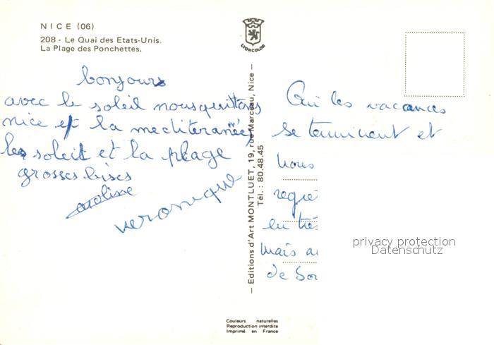 13593087 Nice Alpes Maritimes Quai des Etats Unis Plage des Ponchettes postalisch nicht gelaufen Erhaltung siehe scans [FriedD77] Frie Katcode 11170006206088