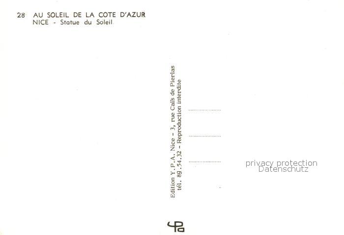 13606803 Nice Alpes Maritimes Statue du Soleil postalisch nicht gelaufen Erhaltung siehe scans [LiesaD40] KatCode: 11170006206088