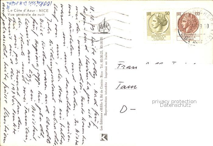 12430524 carte postale Nice Alpes Maritimes Vue generale de nuit Port Cote d Azur postalisch gelaufen Erhaltung siehe scans KatCode: 11170006206088