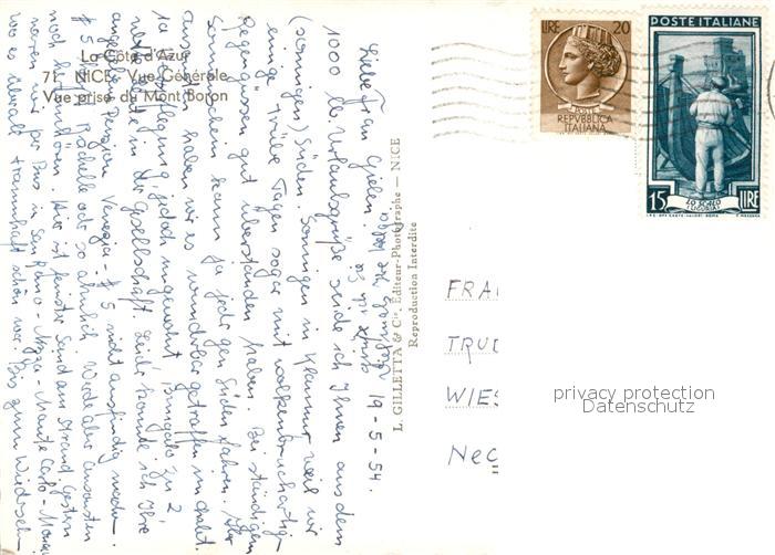 13252268 carte postale Nice Alpes Maritimes Vue prise du Mont Boron postalisch gelaufen Erhaltung siehe scans [WerneD78] KatCode: 11170006206088