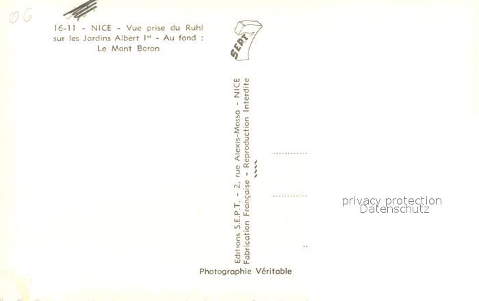 13534208 Nice Alpes Maritimes Vue prise du Ruhl sur les Jardins Albert Ier au fond Mont Boron Côte d Azur postalisch nicht gelaufen Erhaltung siehe scans [FriedD77] KatCode: 11170006206088