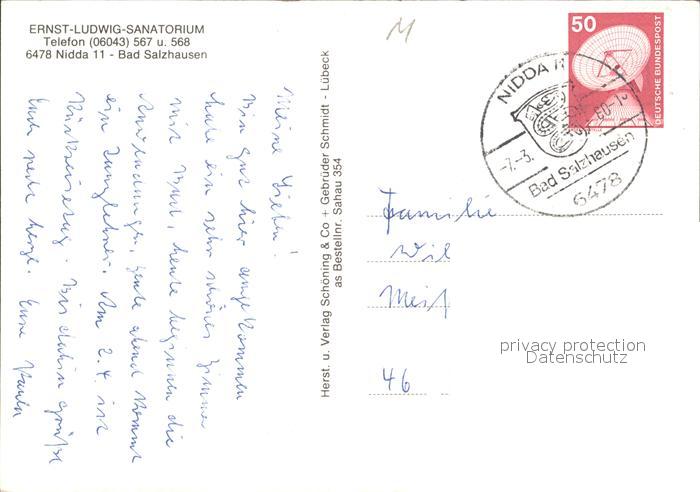 72112771 alte Postkarte Nidda Ernst Ludwig Sanatorium postalisch gelaufen Erhaltung siehe scans KatCode: 11110006440016
