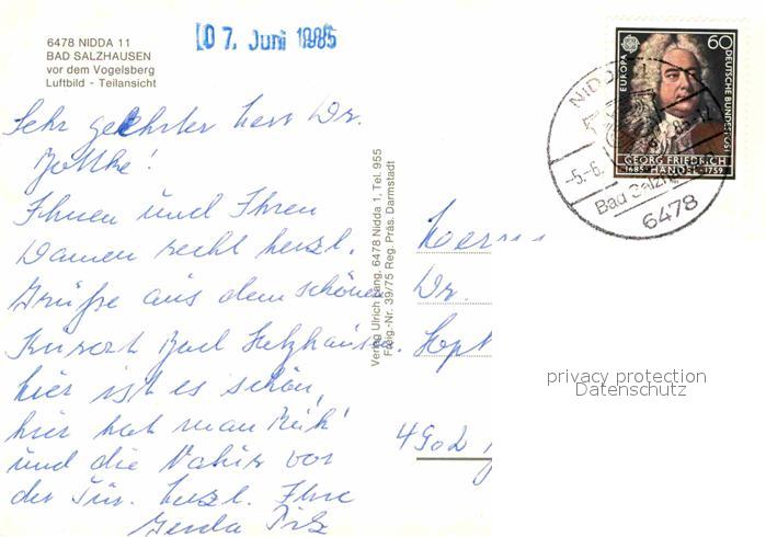 72837415 alte Postkarte Nidda Fliegeraufnahme postalisch gelaufen Erhaltung siehe scans [NatalD47] KatCode: 11110006440016