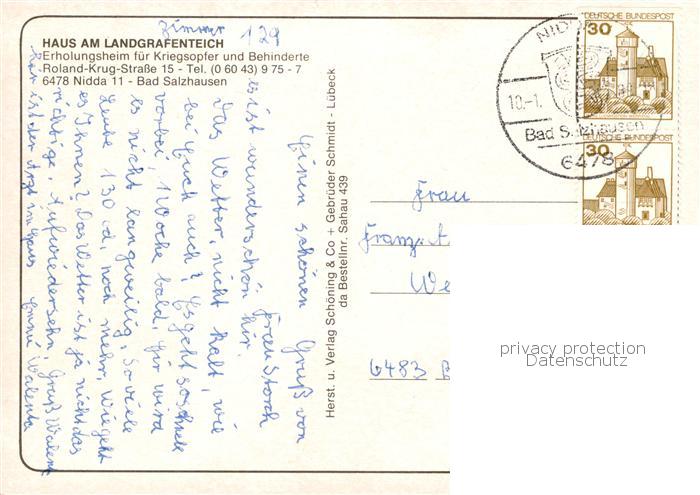 73787289 alte Postkarte Nidda Haus am Landgrafenteich Erholungsheim postalisch gelaufen Erhaltung siehe scans [FriedD77] KatCode: 11110006440016