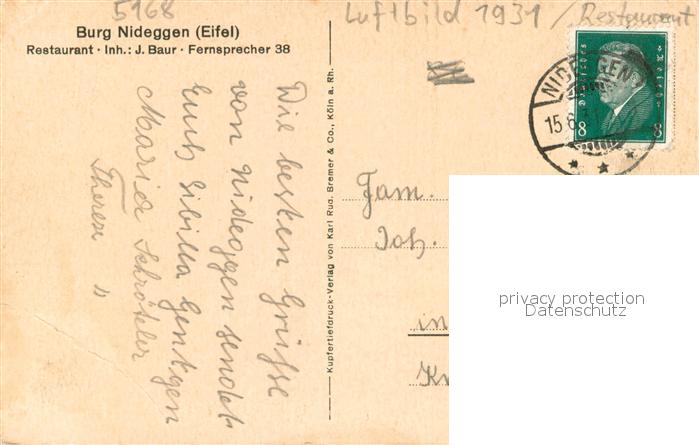 73691491 alte Postkarte Nideggen Eifel Burg Nideggen Fliegeraufnahme postalisch gelaufen Erhaltung siehe scans [FriedD77] KatCode: 11110005358044