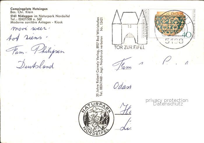 72377528 alte Postkarte Nideggen Eifel Campingplatz Hetzingen postalisch gelaufen Erhaltung siehe scans KatCode: 11110005358044