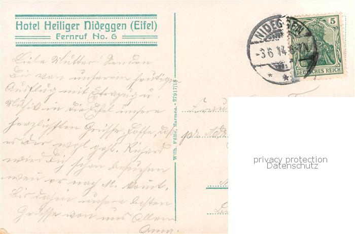 73800880 alte Postkarte Nideggen Eifel Hotel Heiliger Nideggen Panorama postalisch gelaufen Erhaltung siehe scans [WerneD78] KatCode: 11110005358044