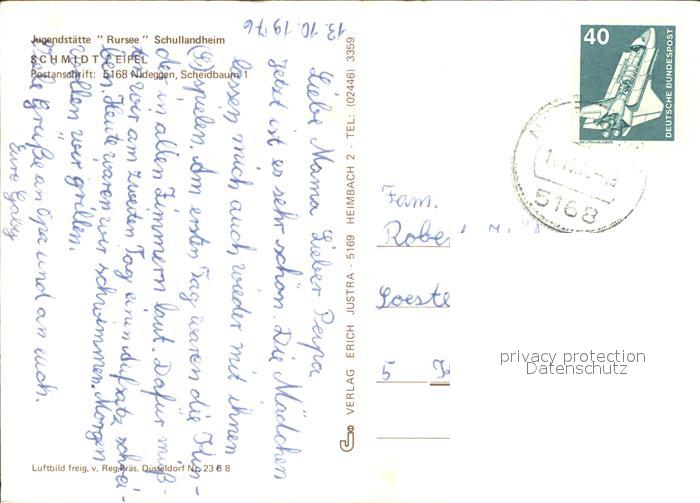 71909204 alte Postkarte Nideggen Eifel Jugendstaette Rursee Schullandheim postalisch gelaufen Erhaltung siehe scans KatCode: 11110005358044