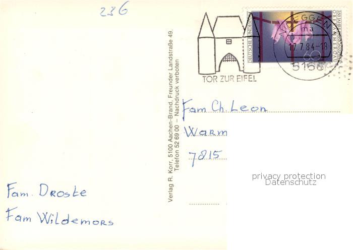 73672948 alte Postkarte Nideggen Eifel Ortsansicht Wildgehege Panorama Gaststaette Terrasse postalisch gelaufen Erhaltung siehe scans [WerneD78] KatCode: 11110005358044