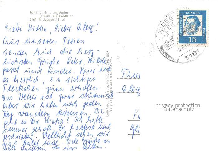 74042658 alte Postkarte Nideggen Eifel Panorama Familien-Erholungsheim Haus der Familie postalisch gelaufen Fliegeraufnahme Erhaltung siehe scans [FriedD77] KatCode: 11110005358044