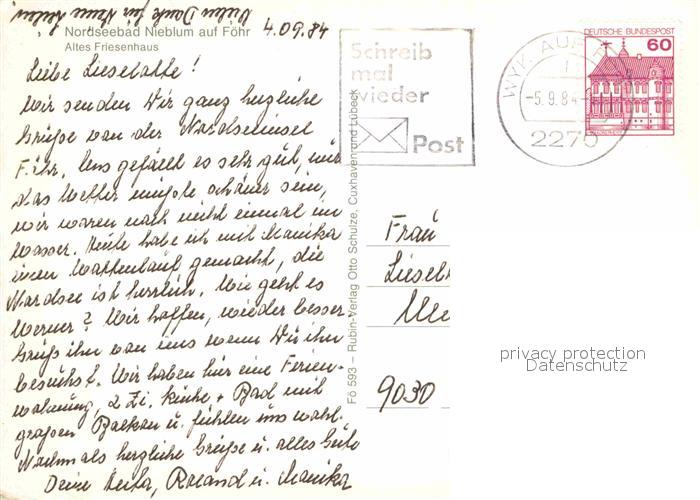 72650906 alte Postkarte Nieblum Altes Friesenhaus Reetdachhaus postalisch gelaufen Erhaltung siehe scans [FriedD77] KatCode: 11110001054087