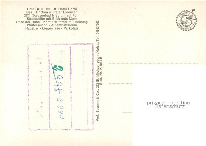 73726536 Nieblum Cafe Osterheide Hotel Garni postalisch nicht gelaufen Erhaltung siehe scans [LiesaD40] KatCode: 11110001054087