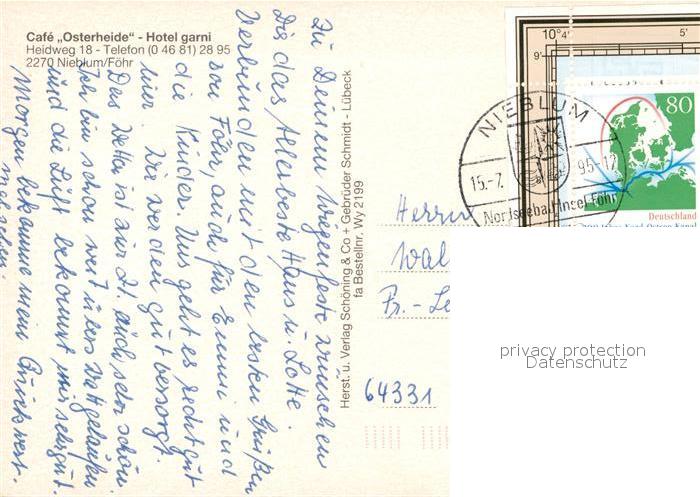 73093889 alte Postkarte Nieblum Cafe Osterheide Hotel garni postalisch gelaufen Erhaltung siehe scans [KathaD81] KatCode: 11110001054087