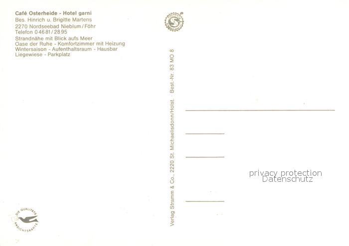73726559 Nieblum Cafe Osterheide Hotel Garni postalisch nicht gelaufen Erhaltung siehe scans [LiesaD40] KatCode: 11110001054087