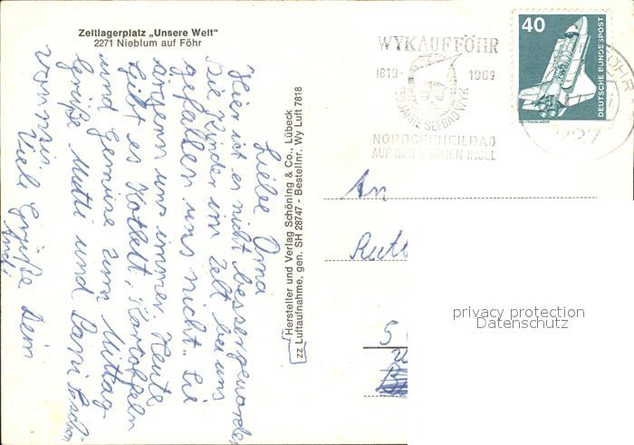 72123517 alte Postkarte Nieblum Camping Unsere Welt postalisch gelaufen KatCode: 11110001054087
