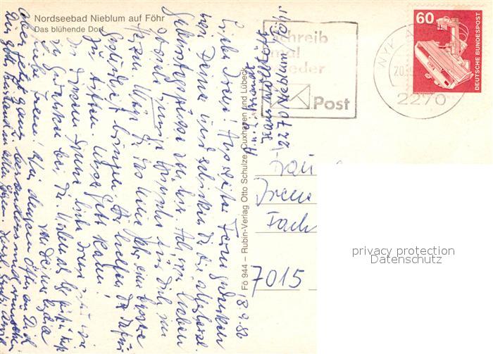 72970298 alte Postkarte Nieblum Das bluehende Dorf postalisch gelaufen Erhaltung siehe scans [FriedD77] KatCode: 11110001054087