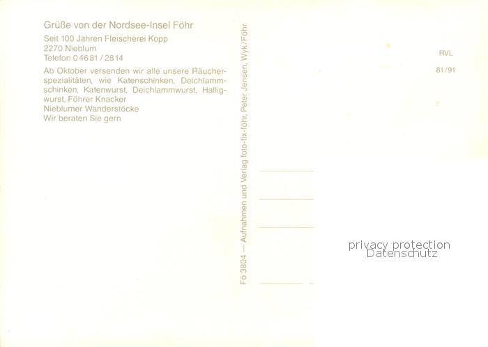 73090536 Nieblum Fleischerei Kopp postalisch nicht gelaufen Erhaltung siehe scans [NatalD47] KatCode: 11110001054087