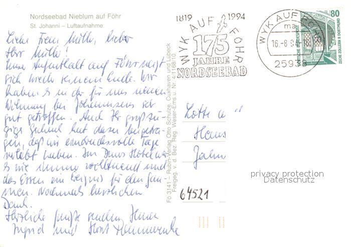 73090563 alte Postkarte Nieblum Fliegeraufnahme St. Johanni postalisch gelaufen Erhaltung siehe scans [NatalD47] KatCode: 11110001054087