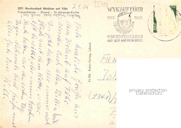 72720603 alte Postkarte Nieblum Friesenhaeuser Strand Johanniskirche postalisch gelaufen Erhaltung siehe scans [KathaD79] KatCode: 11110001054087