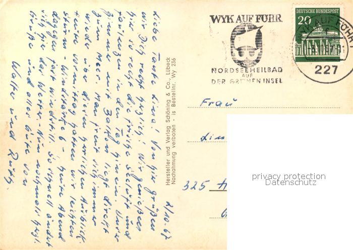 73137826 alte Postkarte Nieblum Tracht Wyk Hafenmole postalisch gelaufen Erhaltung siehe scans [NatalD47] KatCode: 11110001054087