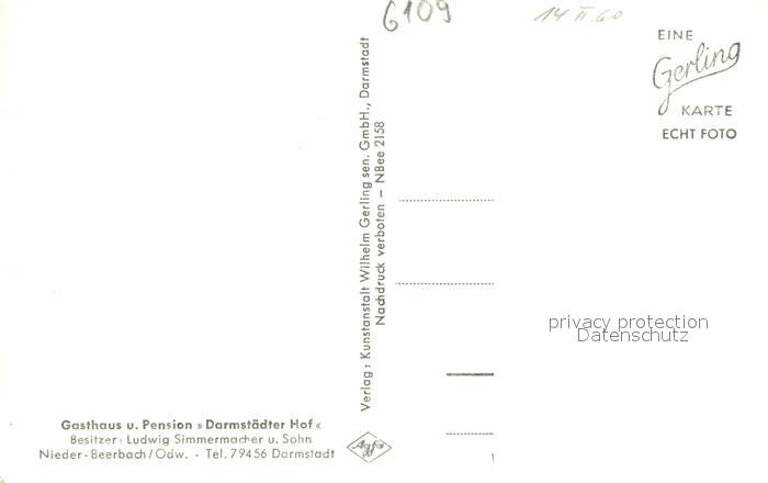 73707065 Nieder-Beerbach Darmstaedter Hof Aussenansicht postalisch nicht gelaufen Erhaltung siehe scans [LiesaD40] KatCode: 11110006432014
