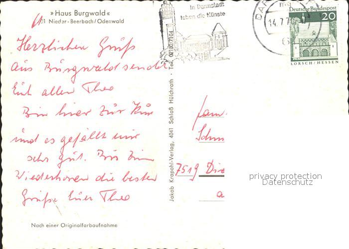 72036462 alte Postkarte Nieder-Beerbach Haus Burgwald postalisch gelaufen Erhaltung siehe scans KatCode: 11110006432014