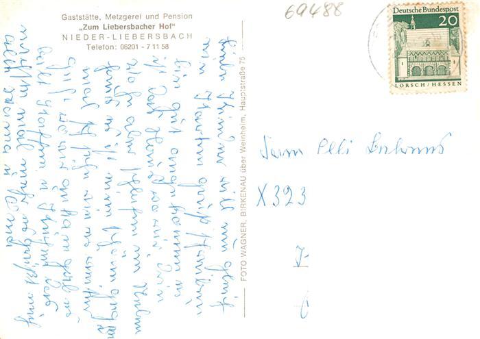 73869142 alte Postkarte Nieder-Liebersbach Birkenau Gaststaette Metzgerei Zum Liebersbacher Hof postalisch gelaufen Erhaltung siehe scans [FriedD77] KatCode: 11110006431004