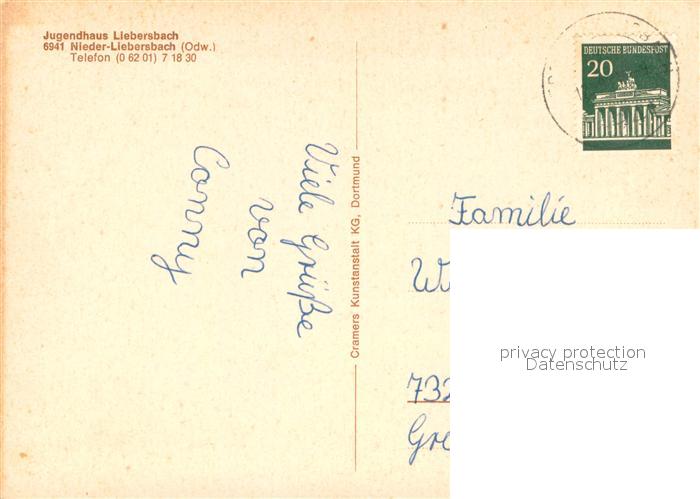73717324 alte Postkarte Nieder-Liebersbach Jugendhaus Liebersbach postalisch gelaufen Erhaltung siehe scans [WerneD78] KatCode: 11110006431004