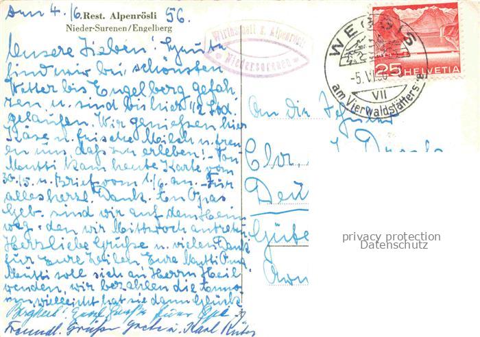 34145007 alte Postkarte Nieder-Surenen Niedersurenen Engelberg OW Restaurant Alpenroesli postalisch gelaufen Erhaltung siehe scans [FriedD77] KatCode: 11470150440294