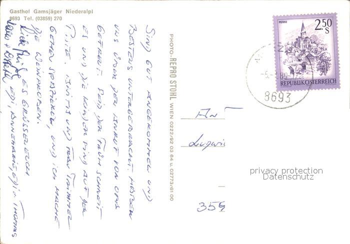 72264615 alte Postkarte Niederalpl Gasthof Gamsjaeger postalisch gelaufen Erhaltung siehe scans KatCode: 11390223061310