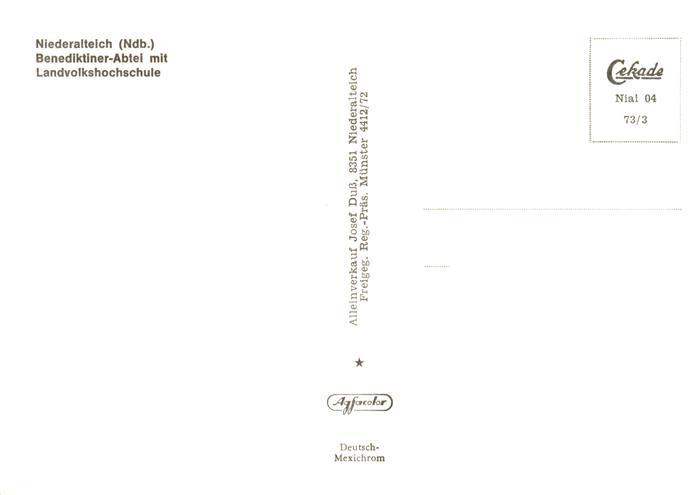 73878414 Niederalteich Donau Benediktiner Abteimit Landvolkshochschule Fliegeraufnahme postalisch nicht gelaufen Erhaltung siehe scans [WerneD78] KatCode: 11110009271138