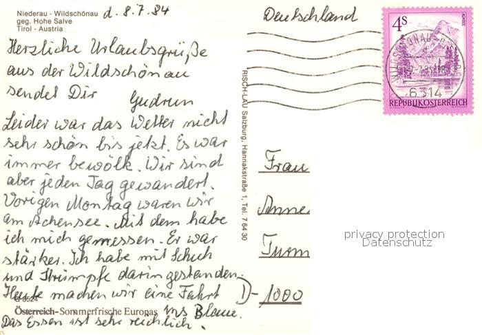 73129980 alte Postkarte Niederau Wildschönau Panorama postalisch gelaufen Erhaltung siehe scans [KathaD81] KatCode: