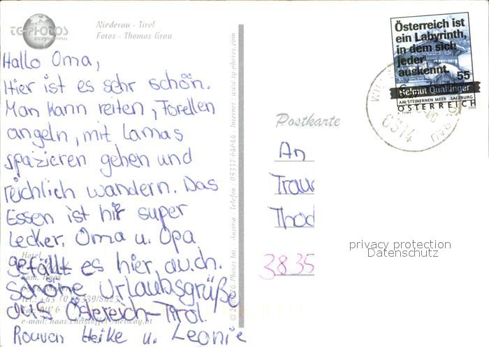 72576948 alte Postkarte Niederau Wildschoenau Hotel Christoffel postalisch gelaufen Erhaltung siehe scans [LiesaD40] KatCode: 11390