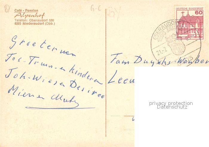 73650783 alte Postkarte Niederaudorf Cafe Pension Alpenhof postalisch gelaufen Erhaltung siehe scans [WerneD78] KatCode: 11110009187157