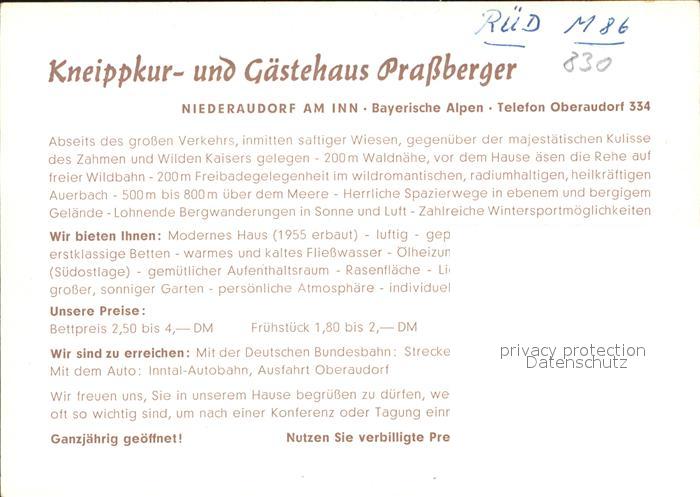 72615071 Niederaudorf Gaestehaus Prassberger postalisch nicht gelaufen Werbekarte (keine Postkarte) Erhaltung siehe scans [NatalD47] KatCode: 11110009187157