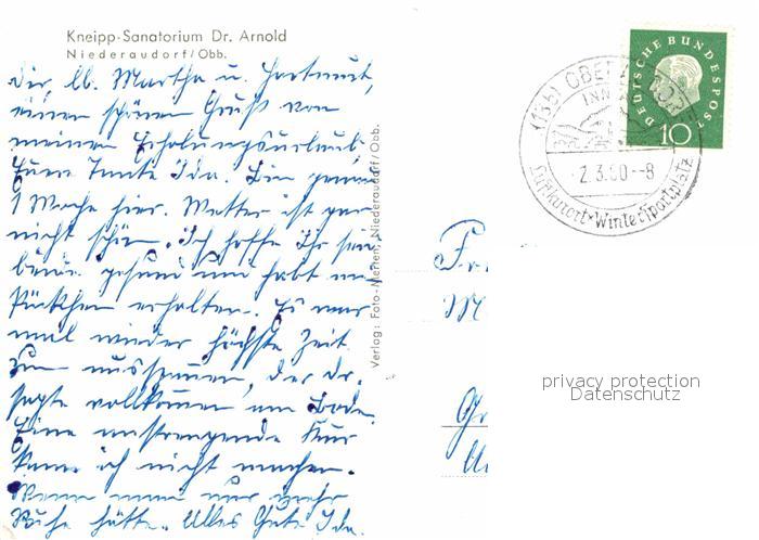 72694058 alte Postkarte Niederaudorf Kneipp Sanatorium Dr Arnold Alpenpanorama Kapelle Innbruecke Auerbach mit Brunnstein postalisch gelaufen Erhaltung siehe scans [FriedD77] KatCode: 11110009187157
