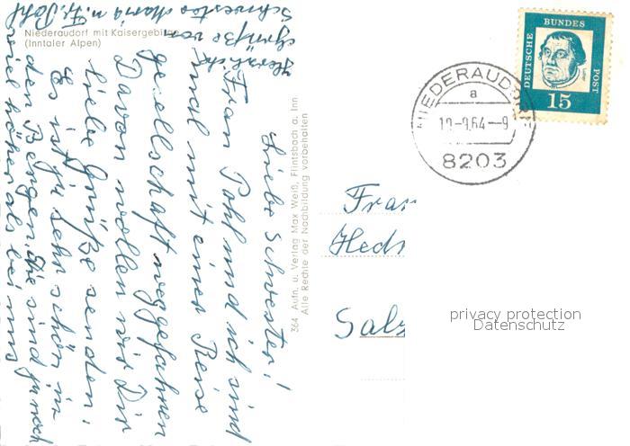 73671554 alte Postkarte Niederaudorf Ortsansicht mit Kirche Blick auf das Kaisergebirge postalisch gelaufen Erhaltung siehe scans [FriedD77] KatCode: 11110009187157