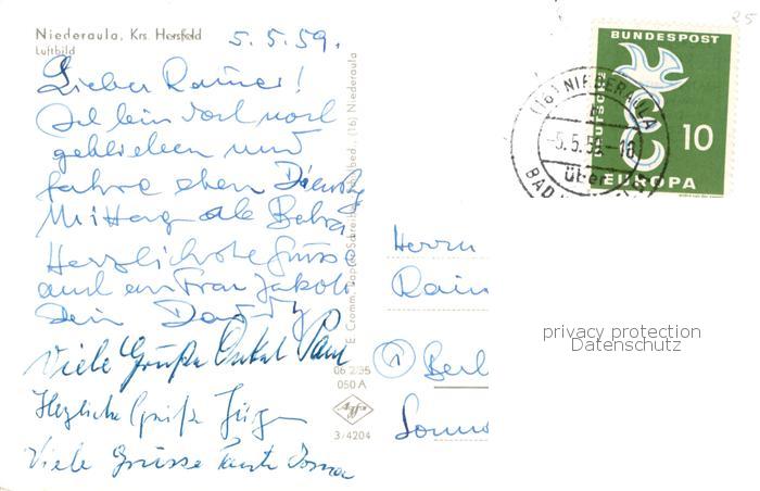 73803306 alte Postkarte Niederaula Fliegeraufnahme postalisch gelaufen Erhaltung siehe scans [FriedD77] KatCode: 11110006632015